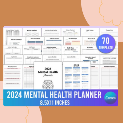 Editable 2024 Mental Health Planner Canva Template KDP Interiors, Editable Canva Link you can Customize it based on your requirement. Ready for home and office or shop use. You will get a high-quality print-ready KDP interior for professional or casual Use. You can add your own personal touch by changing the colors, fonts, layouts, images, and backgrounds.